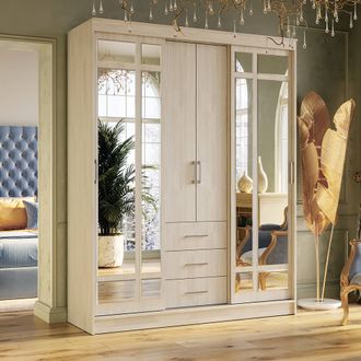 Описание: Функциональный и компактный шкаф-купе «Маэстро» порадует своего нового обладателя новым трендовым цветовыми решениями. Завораживающий декор фасада в виде зеркал с фацет обработкой придает дополнительный шарм этой модели. Используемый раздвижной механизм премиум-класса соответствует современным тенденциям. Многочисленные полки, два платяных отделения и комод позволяют свободно разместить одежду в шкафу.