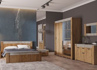 Модульная коллекция «Франк» - это отличное решение, которое поможет Вам создать гармоничную атмосферу и стильно обустроить жилое помещение. Для наилучшего зонирования данная коллекция включает в себя не только стандартные предметы мебели для спальни, но и дополнительный выбор разнообразных модулей, которые фантастически дополнят ваш интерьер. Современный дизайн модульной системы «Франк» доведен до совершенства. Строгие прямые линии, стильное сочетание двух декоров «Крафт» и «Метрополитан Грей», несомненно, выделяет данную модель среди других спален.